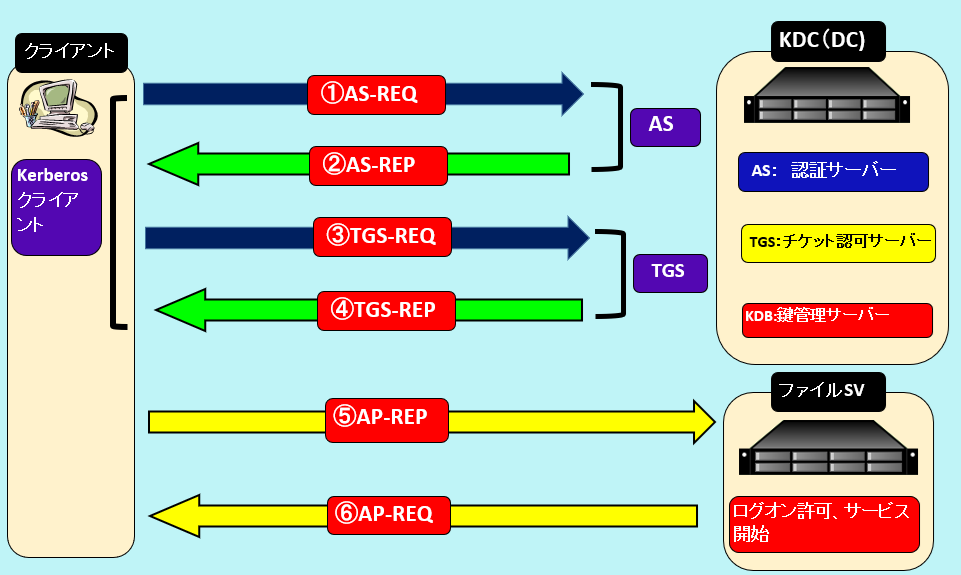Kerberos認証時のパケットのやり取りを下図に示す。